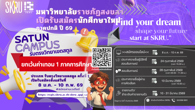 SKRU Online เปิดตัวหลักสูตร มรภ.สงขลา "วิทยาเขตสตูล"